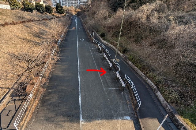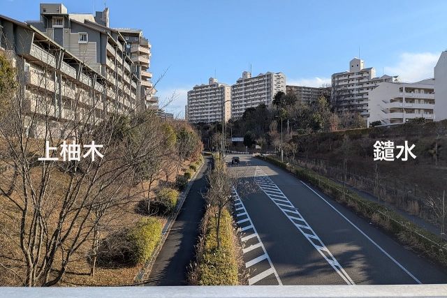 多摩ニュータウン名物、橋から見る景色の左右で住区が違うやつである。