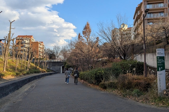 ベルコリーヌを抜けてひたすら歩く。歩行者専用道がずっと続いているので、南大沢では一度も車道にでなかった。