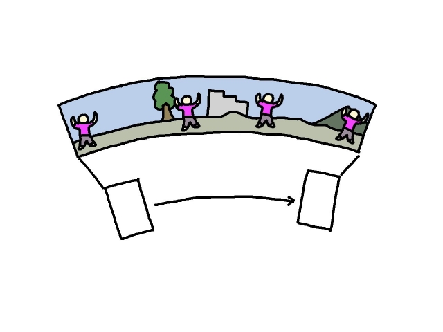 万華鏡レンズは家で試していたのでビートルズが塊になることは薄々予想できていた。他の方法はないか考えていたところ、パノラマ写真で分身できることを思い出した。