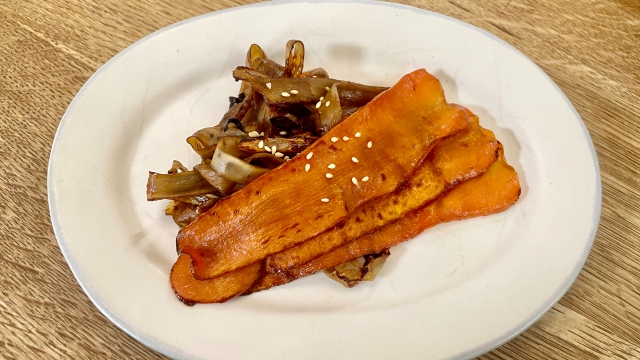 にんじん、大成功かも。にんじんそのものの旨味は十分に、しかし過剰さはなく食べやすい。発明だ。
