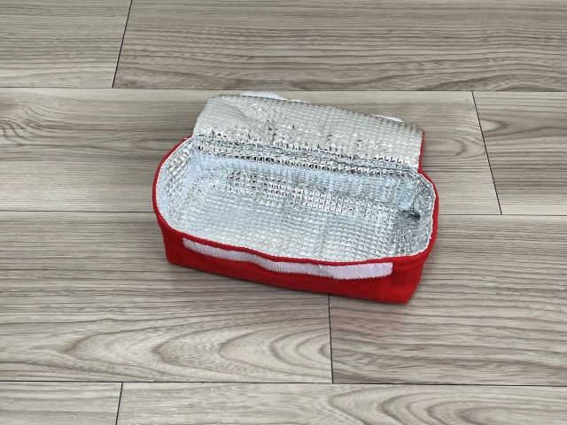袋で使った赤い布で、箱の方も作っていこう!