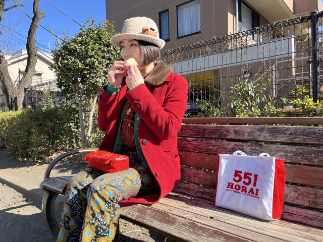 実際に関西のお店に行って食べるときも、できたてを味わいたくて公園のベンチなどで食べている。551さえあればここは大阪だ。