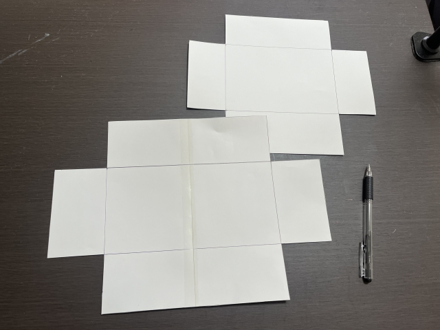 ここは横着せず型紙を作ろう……!と思ったのだが、紙でも小さくなってしまった。サイズを測ったのに……なぜ?