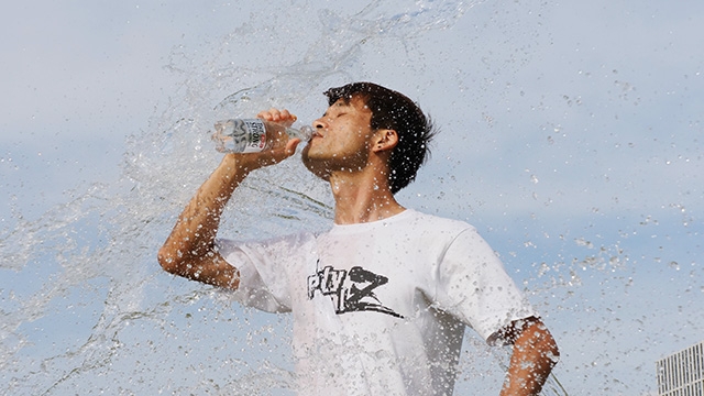 炭酸水のイメージに水しぶきは有効である。爽快感やシズル感、かっこよさを万人に理解できるような形で醸し出すことができる。