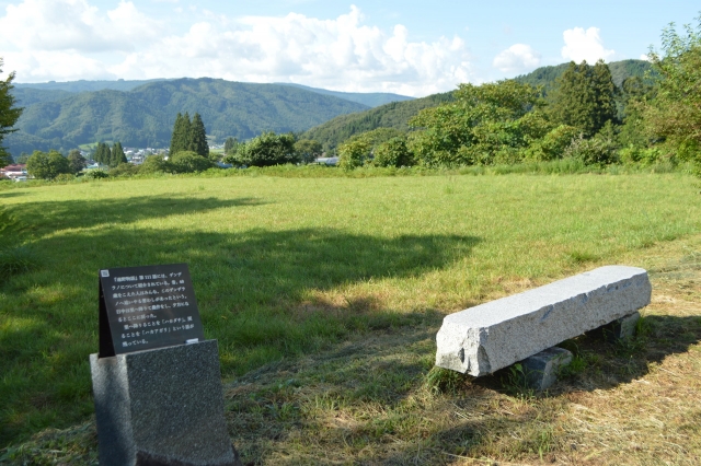 ザシキワラシが出ていってしまったせいで下人ともども毒キノコにあたって死んでしまった当時村一番の長者の屋敷跡。ただのはらっぱが一気にドラマチックに思える。