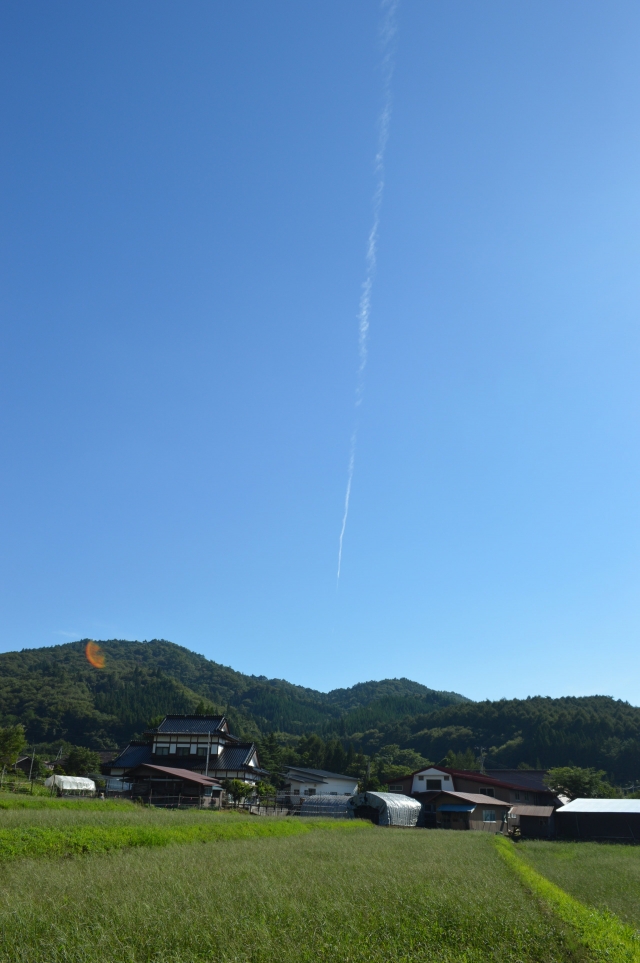 山口集落でまっすぐに伸びる雲が出ており神秘的な力を感じずにはいられなかった。