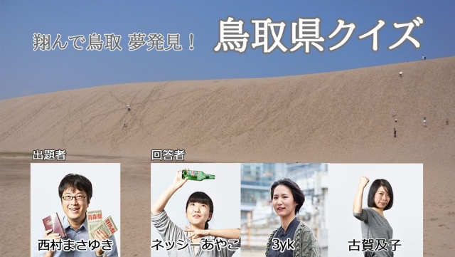 ある土地にゆかりがあるライターが独自の問題を考え出題するシリーズが人気で、東京都町田市クイズ、埼玉県日高市クイズ、群馬県伊勢崎市クイズが開催されました。今日は鳥取県クイズの様子を紹介します。