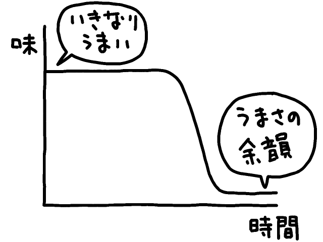 ロケットスタートから始まって、最後は0にならずにバターの香りが残って美味しさの低空飛行がある。