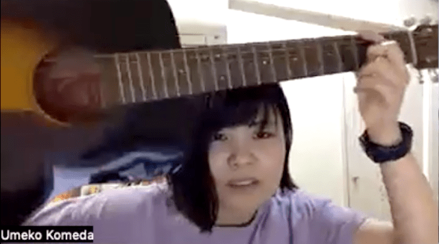 米田:じゃあ弦が錆びてるのを気にしないでまずは弾いてみようと思います。見ても分からないし、錆びてないと思います。錆びてると思うから錆びてる。