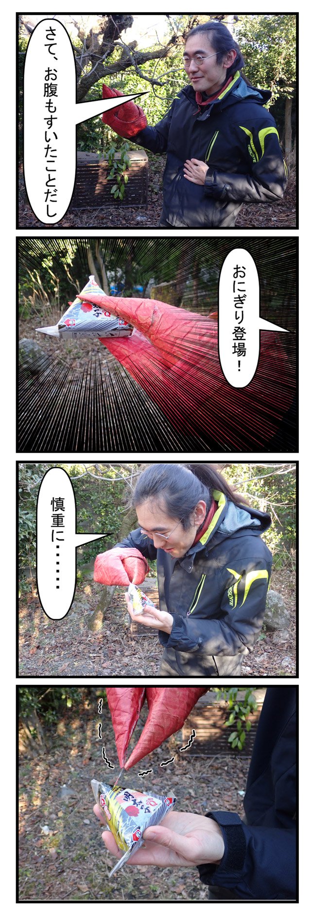 というわけで、手がハサミになってしまったらおにぎりを開封するのも一苦労という話なのであった。