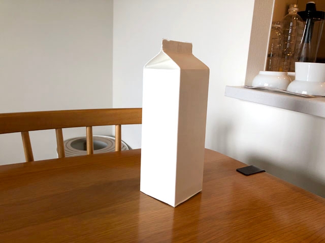 白い。真っ白だ。でも形に特徴があるので牛乳パックと分かる。