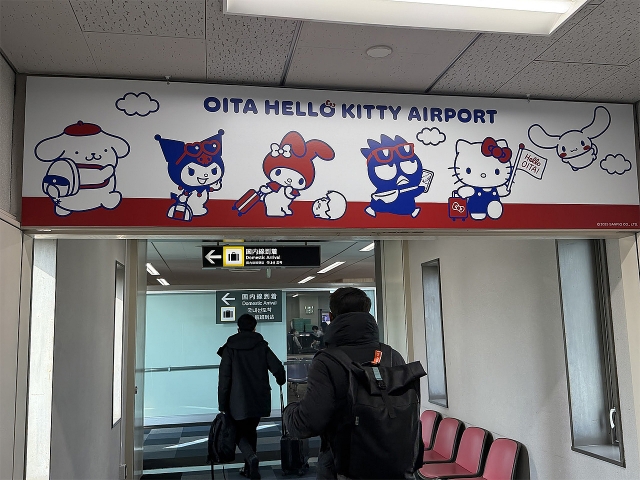 前に大分空港に来たのはずいぶん昔だ。2000年以前かもしれない。30年ぶりの大分空港はハローキティ空港になっていた。今年の3月までの期間限定だそうだ。