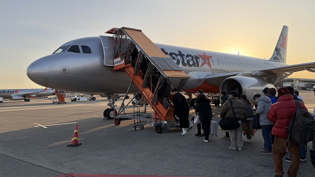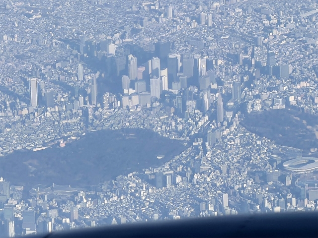 飛行機はギリギリで取ったのになぜか窓際だった。