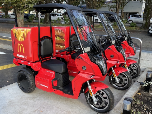 巷のEVブームがバイクにも波及してきて最近新規店舗を初め続々配備されているようです。普段は普通の三輪バイクでガソリンを撒き散らしながら配達している訳ですが、電動特有の静かさや50cc相当とは思えない加速感など全てが新感覚でした。(虎タイガー)