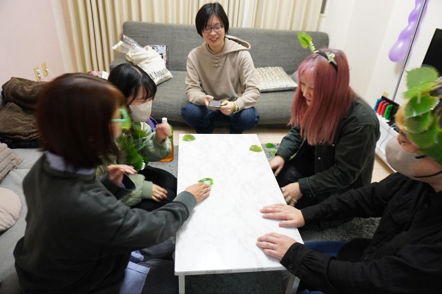 読み上げられるシソ川柳に即したかるたを取っていく和の遊び。