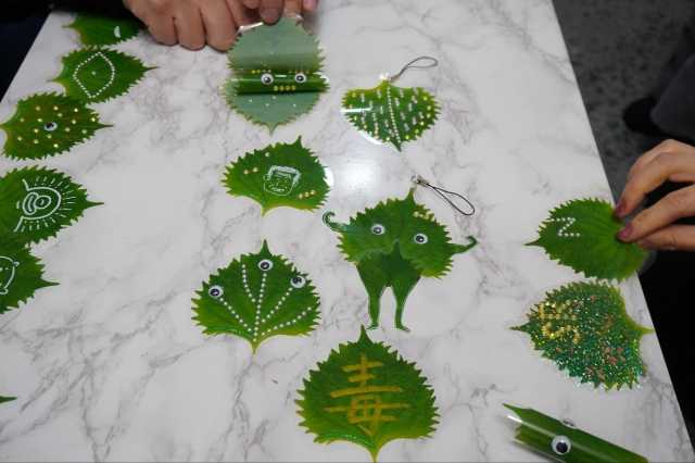 自分だけのオリジナルデコレーションでシソ土産を作るコーナー。