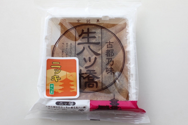 食べてみると、これが硬い。前歯が心配になるくらい硬くて、普通の焼き八つ橋もまぁまぁ硬いけど、こちらはガリムニ食感で、硬いし割れないし噛み切れないという異質な硬さでした。