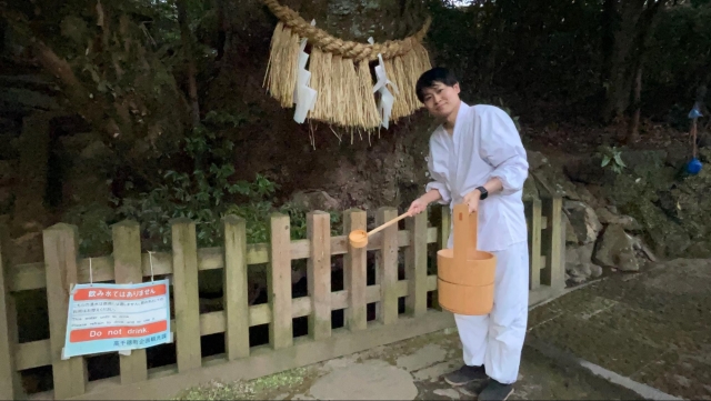 日常生活では井戸の水を使っていたが、若水汲みのときには高千穂にある「天真名井(あめのまない)」と呼ばれる聖蹟から湧き出る神聖な水を汲んでいたとのことだ。
