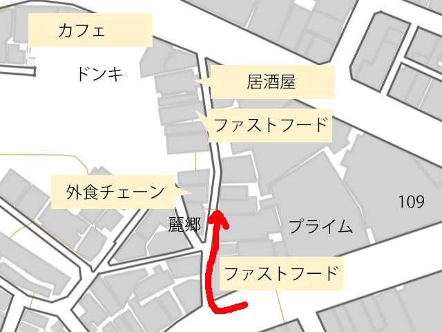 予想もしてない店が登場すると笑ってしまう。クイズの答えが建築物として堂々と出てくる演出がすごい。演出ではなくお店なんですけどね。