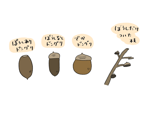 するとドングリにもいろいろあって