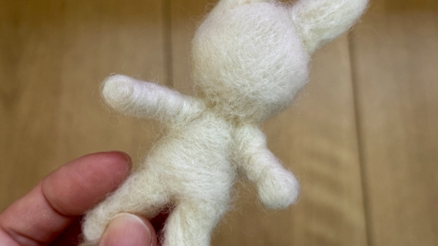 手足などの小さなパーツは、大きなパーツに比べて作るのが難しかった。小さく作ろうと羊毛フェルトを少量取るといくら針を刺しても一向にまとまらず、かといって増量するとパーツがどんどん大きくなってしまう。