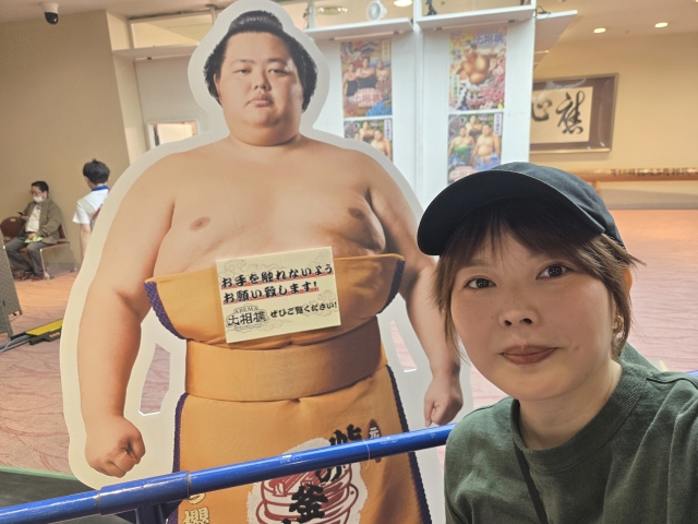 喜んでいると、隣のおじいさんが「琴桜はおなかがぷよぷよしてるから張り倒そうとすると衝撃が吸収されちゃうんだよ」と豆知識を教えてくれた。