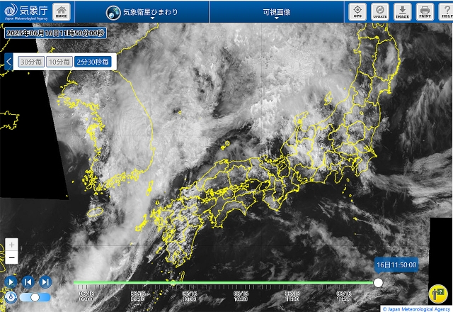 今、日本だったら2分半ごとに見られるので。ほら、東京が雲の隙間に今入ってきましたよね。