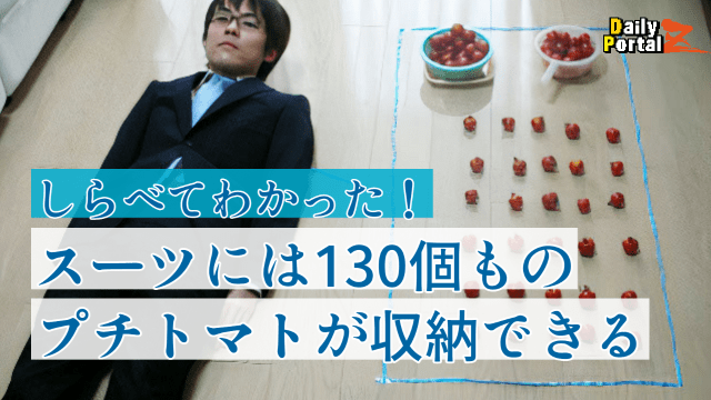 けっきょく、スーツには130個ものプチトマトが収納できた。