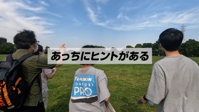 スカイツリーが近くに見える。ほぼ原っぱのような場所では貴重な手がかりになる。