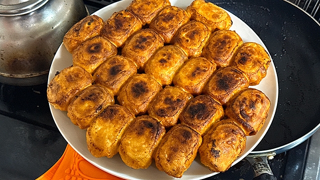 ここからは火加減を中火にして、適当な焦げ目がついたら火を止めて、ひっくり返して皿に盛ったら出来上がり。