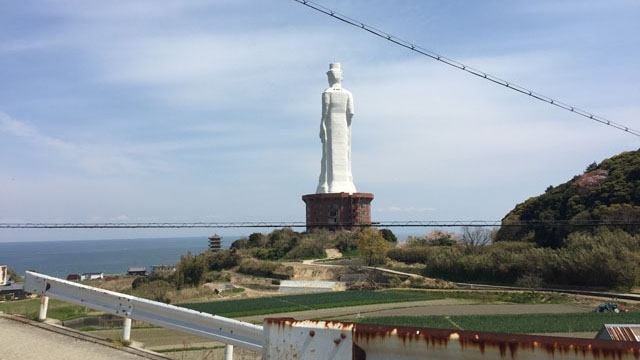 高速道路から一般道に下り、ナビが示す到着時間まで10分を切る。巨大な観音像は遠くからでも見えるはず。どのように現れるのか?どんな場所に立っているのか?と想像を巡らせる。
