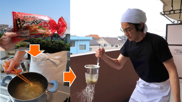 一方で、すこし間違うと麺がアパートの3階から飛んでいってしまうというスリルもある。
