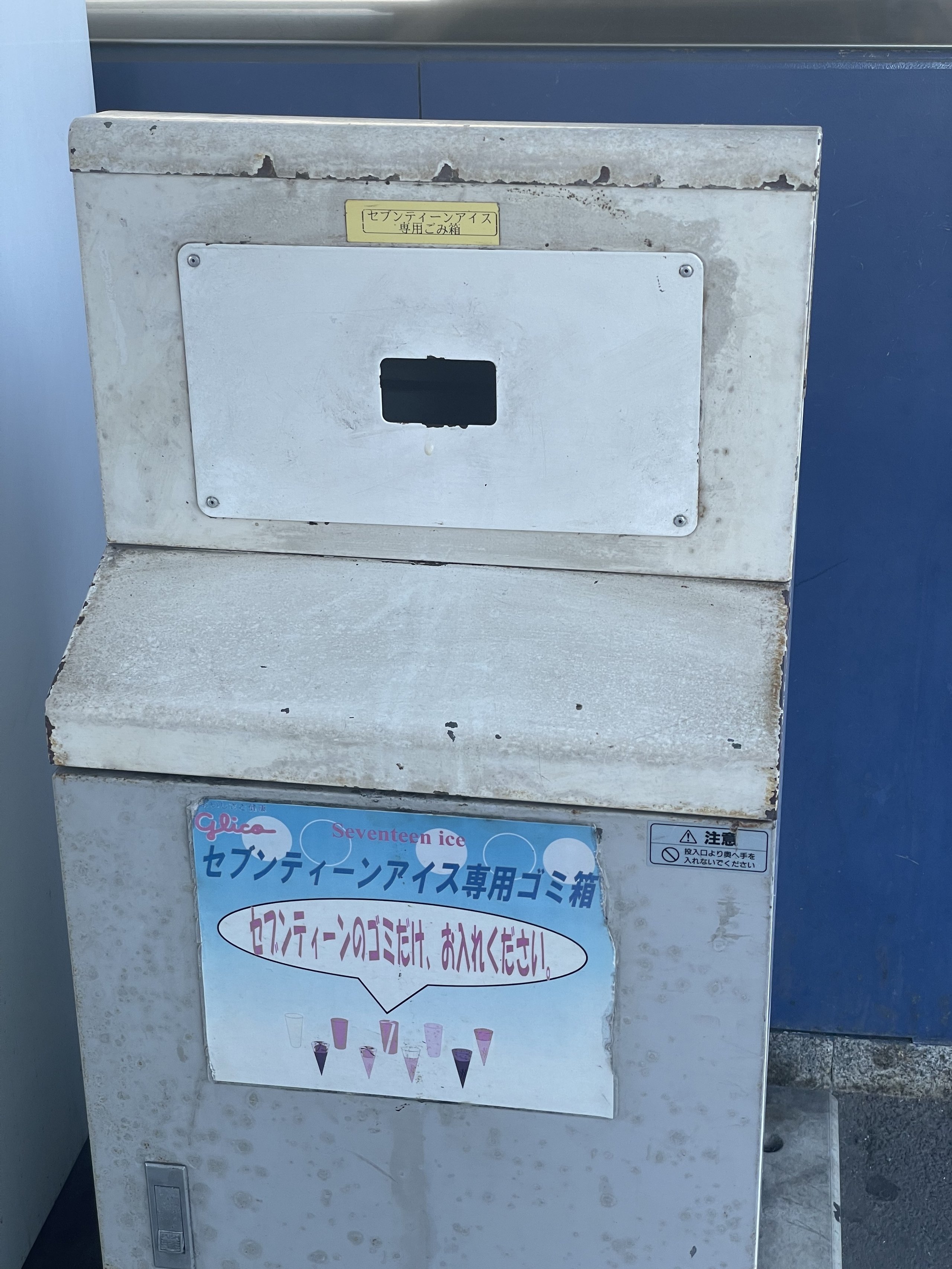とある駅のホームにセブンティーンアイスの自販機があり、昔水泳スクールの帰りに買ってもらってたなぁと思ってたところ、隣にセブンティーンアイス専用のゴミ箱に改造されたであろうゴミ箱がありました。