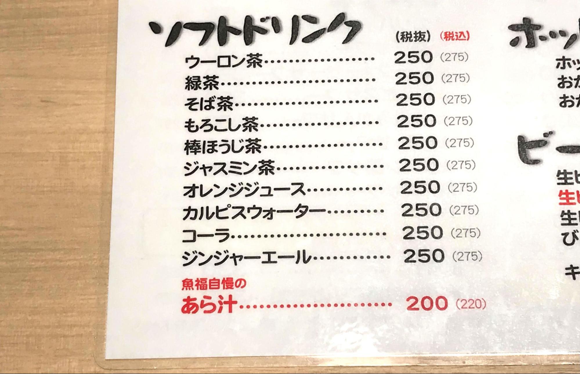 あら汁がソフトドリンク扱いになっていた。