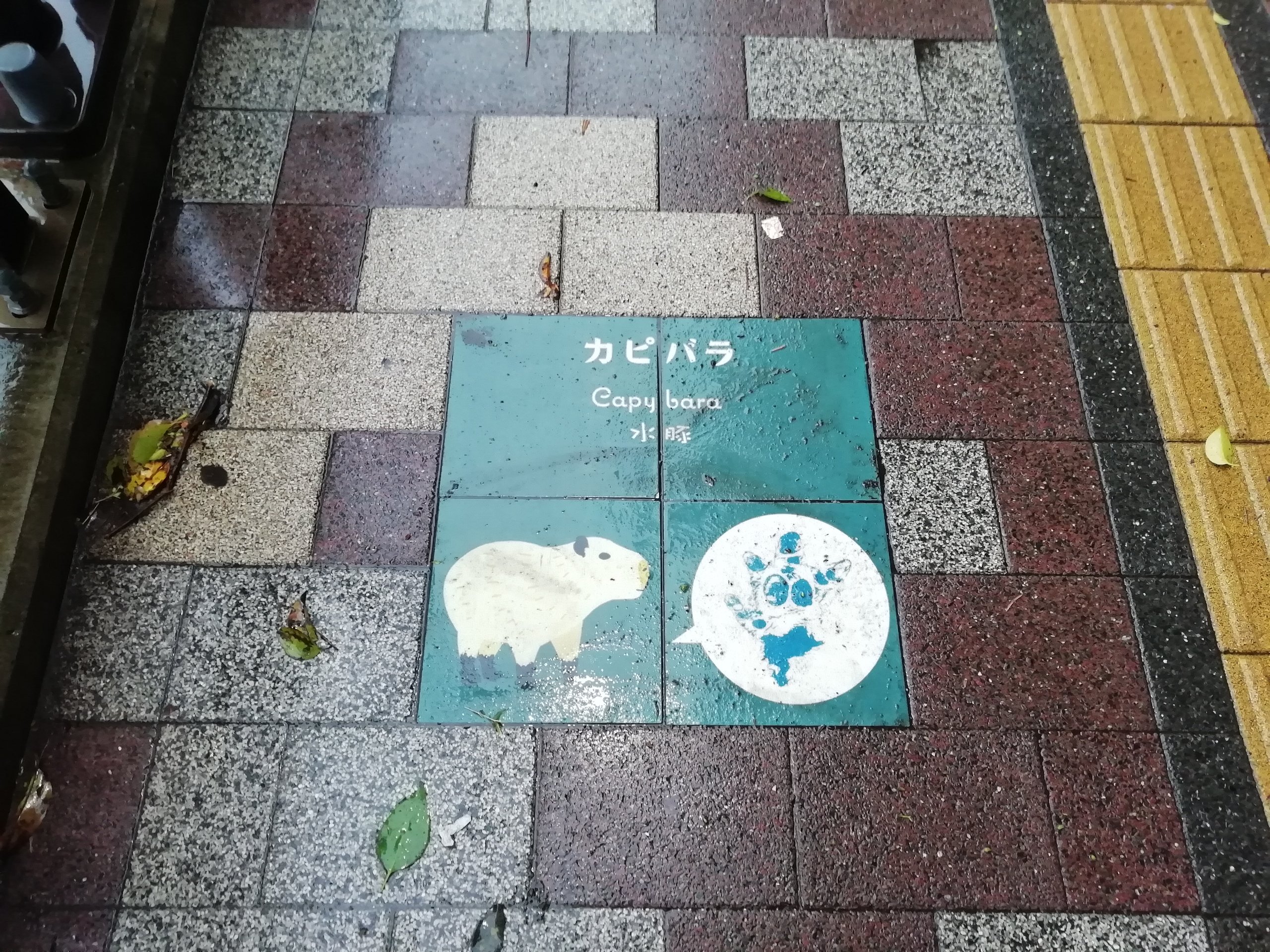 上野公園の近くの歩道には動物のイラストが描かれています。