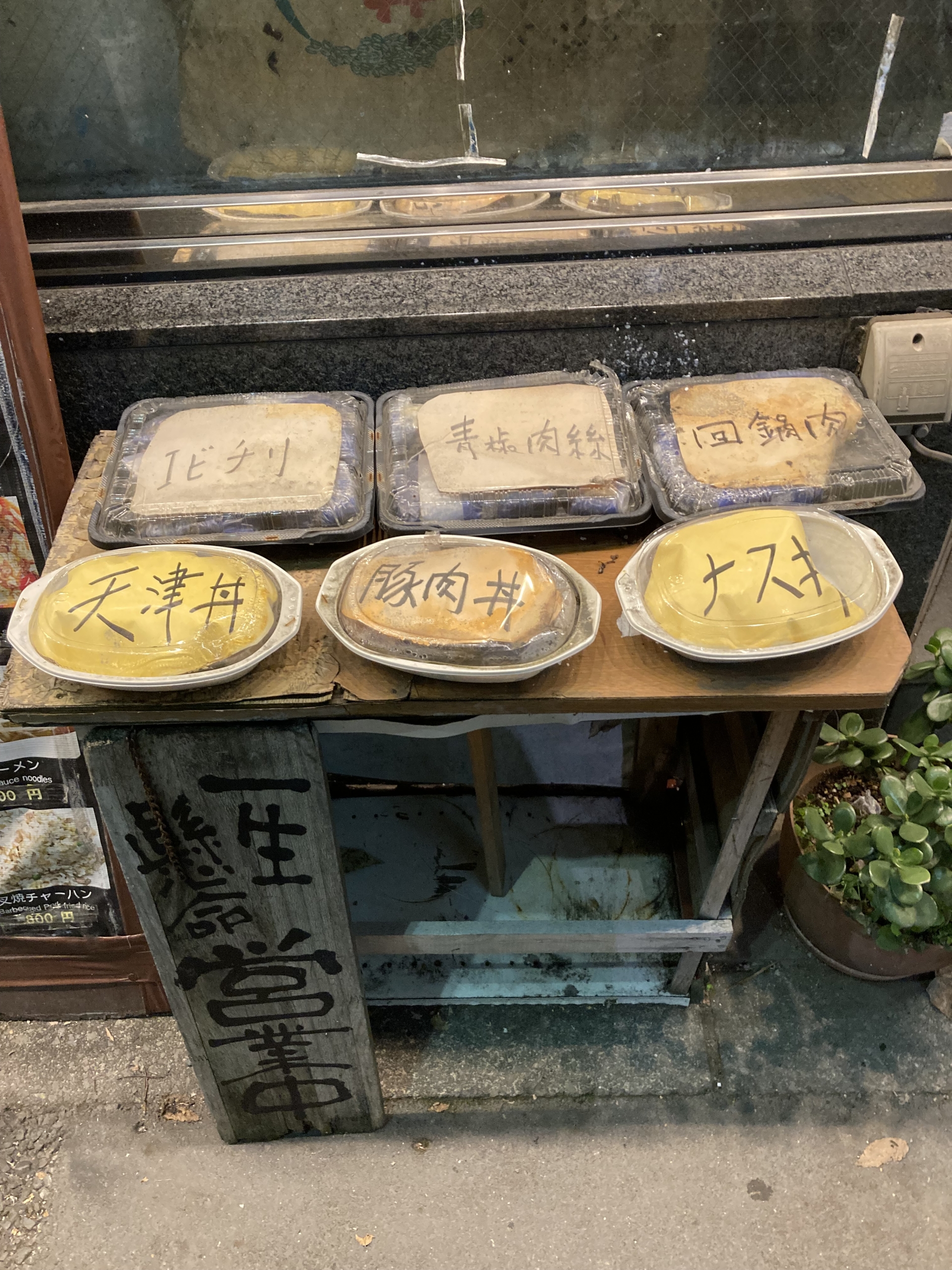 右端の文字が切れているものは「ナス丼」ですが、当時探した限りではメニューに「ナス丼」は見当たりませんでした。(テイクアウトのみっぽい?)