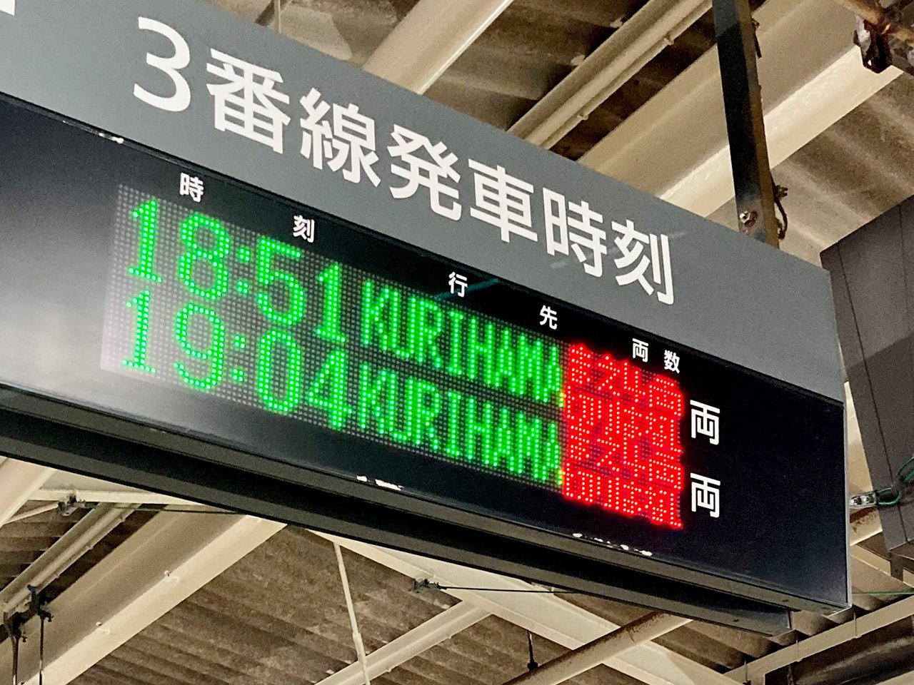 そのことを電光掲示板でもけなげにお知らせしてくれています。「両」「切」は漢字採用、「まえ」はひらがな採用なところにギリギリの判断が見えます。