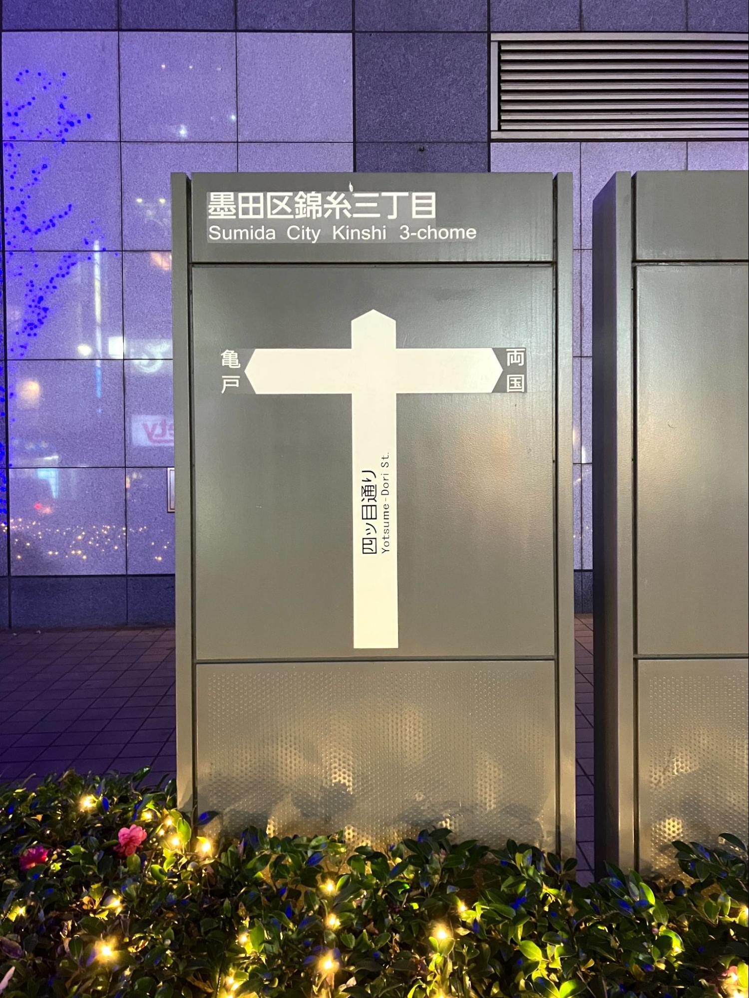 錦糸町駅の近くに道路案内の看板があるのですが、そこに描かれている交差点が十字架の形をしています。