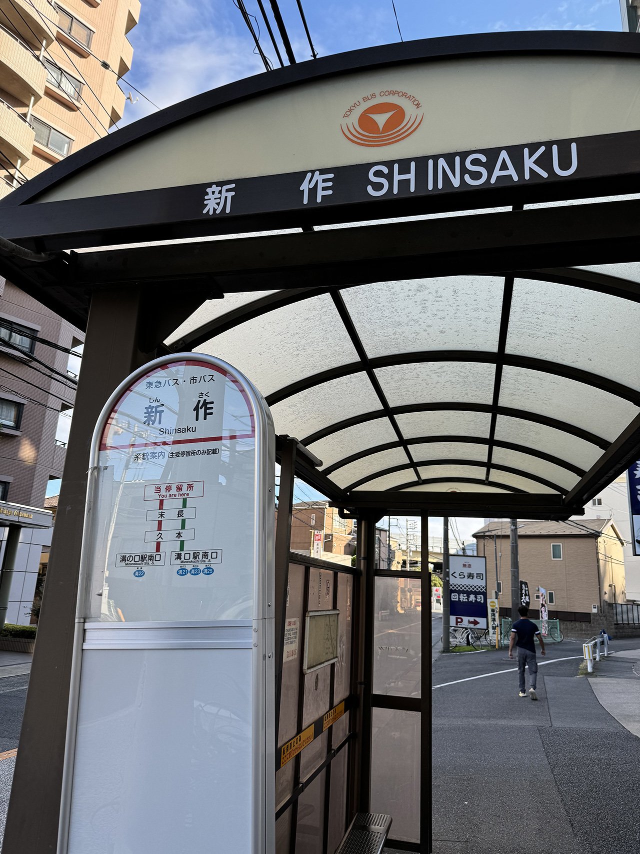 神奈川県川崎市高津区を歩いていた時に見つけた新作(という地名)のバス停です。