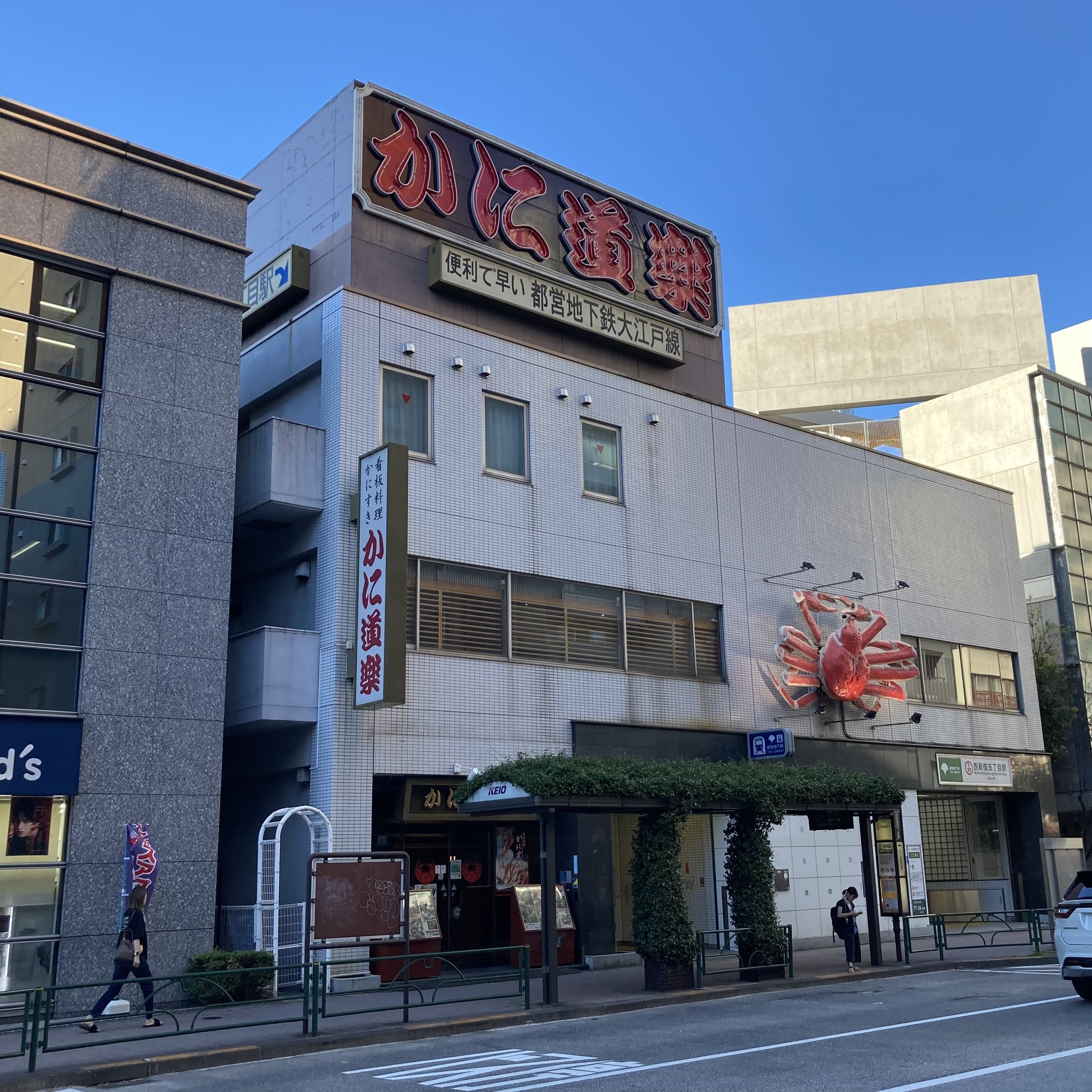 都営大江戸線の西新宿五丁目駅は、かに道楽と融合しています。