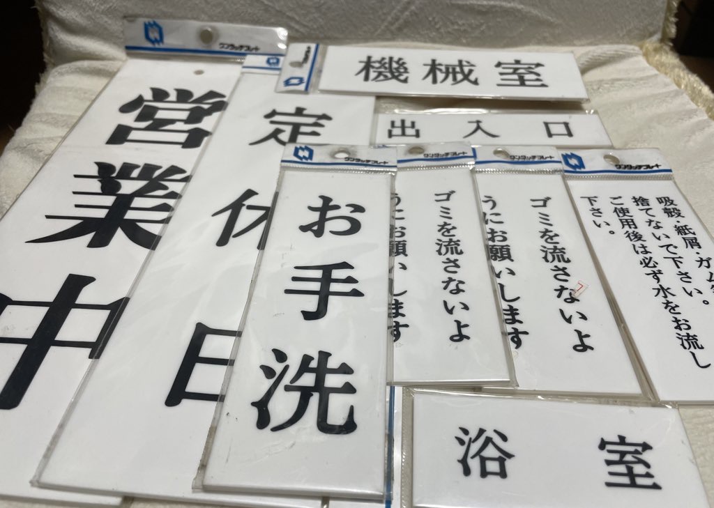 用事のついでにふらっと入った三鷹の文具屋さんで、室内用サインプレートが1枚110円(だったはず)で叩き売りされていました。サインプレートが大好きなのでめちゃくちゃ嬉しかったです。
