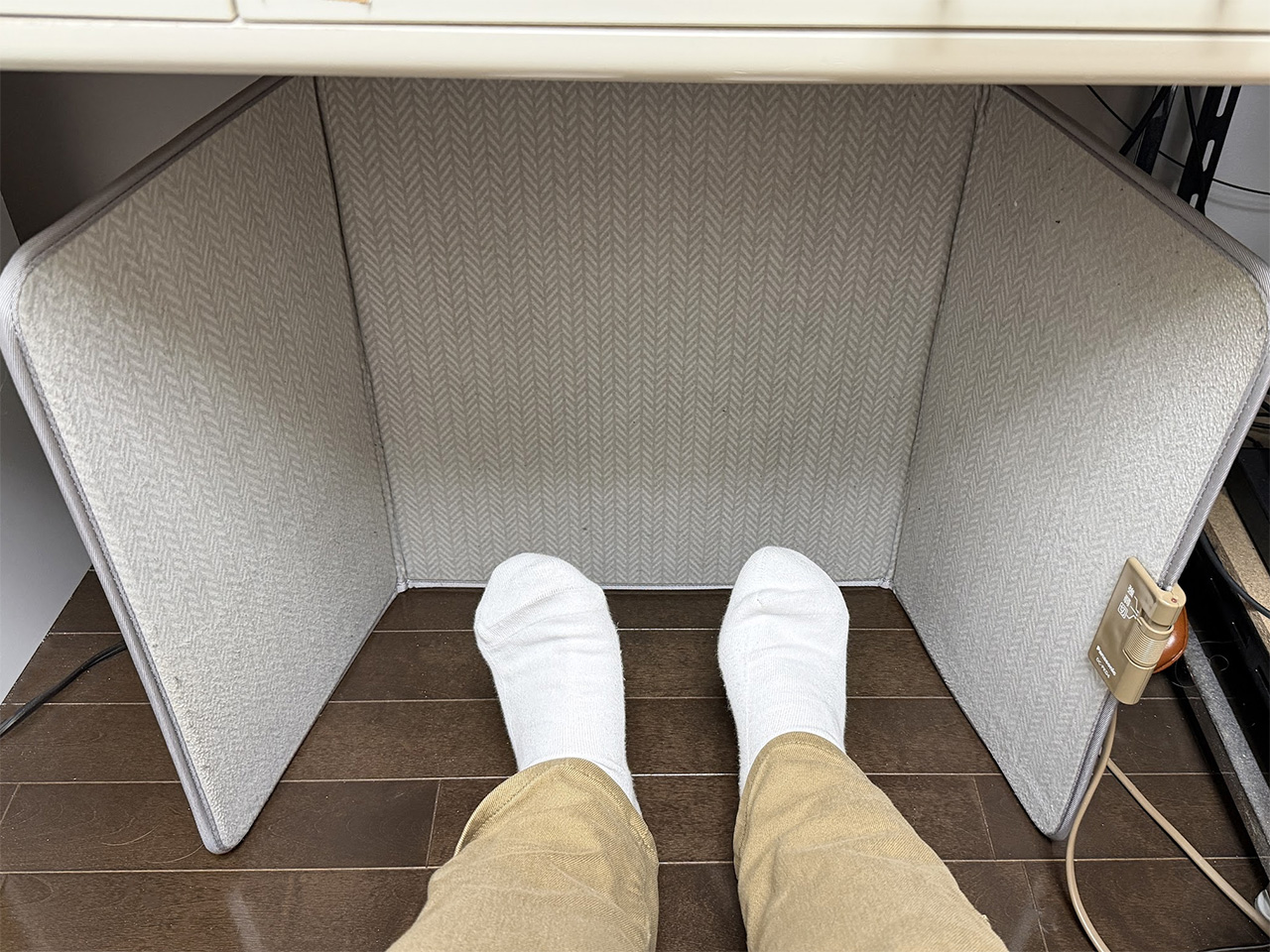 ミニヒーターで手を温め、足下は温熱パネルで暖めています。末端だけ暖めると部屋が20℃以下でも身体は温かいと錯覚するようです。便利ですが簡単に騙される自分の身体が心配です。