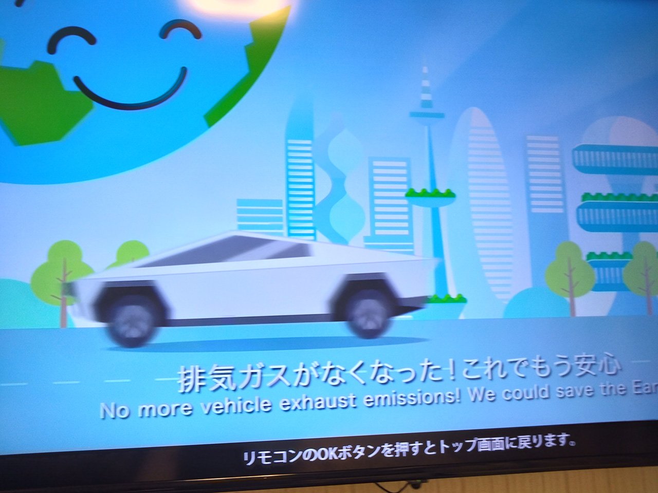 アパホテル部屋内のテレビ広告(ついしっかり観ちゃうあれです)で、テスラのサイバートラックが採用されていました。