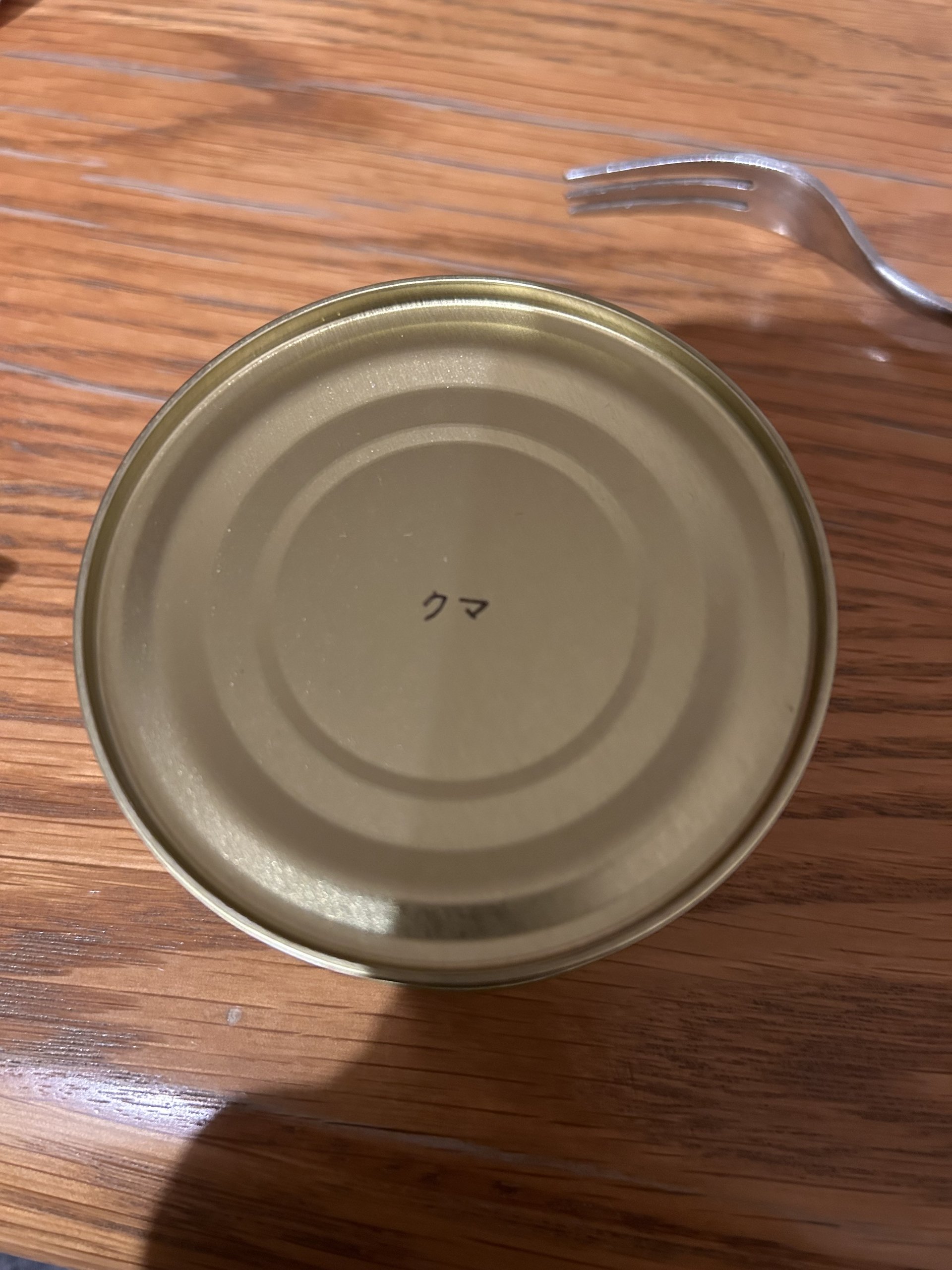 シンプルな缶の表面には2文字「クマ」と記されています。そりゃ熊が入ってるからクマって書いてあるのは当たり前なんですが、何ともシュール。