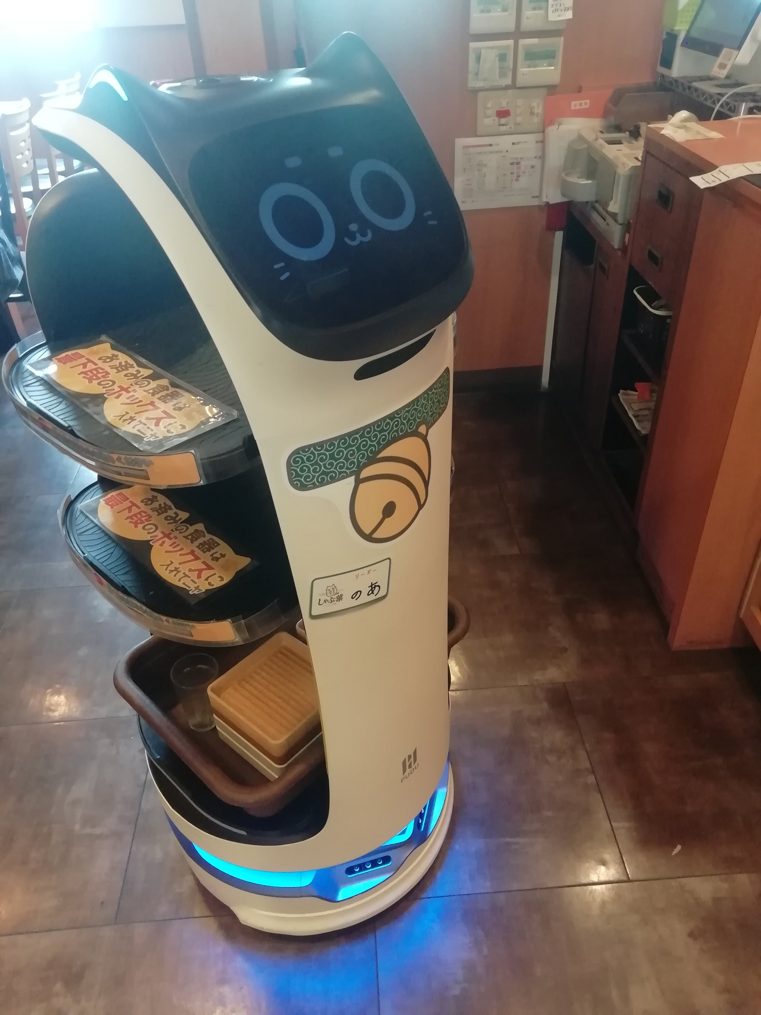 ファミリーレストランなどで軽快な音楽と共に、文句も言わず健気に働く猫型ロボット