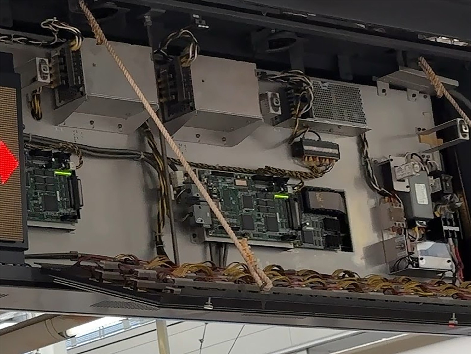 駅の電光掲示板がメンテナンス中でLED部分が開いて中が見えていました。