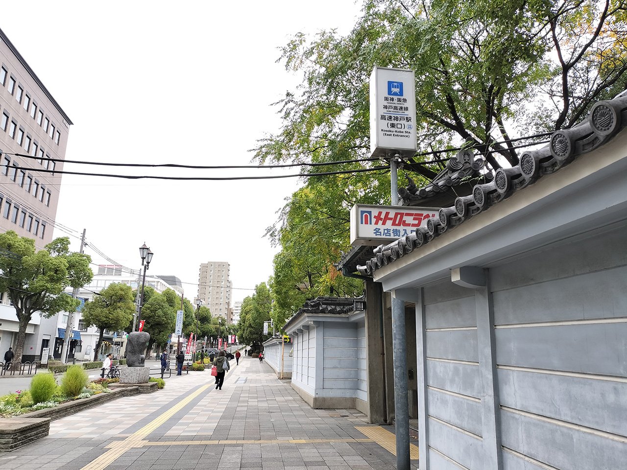 神戸市にある高速神戸駅の入口は、落ち着いた和風建築です。