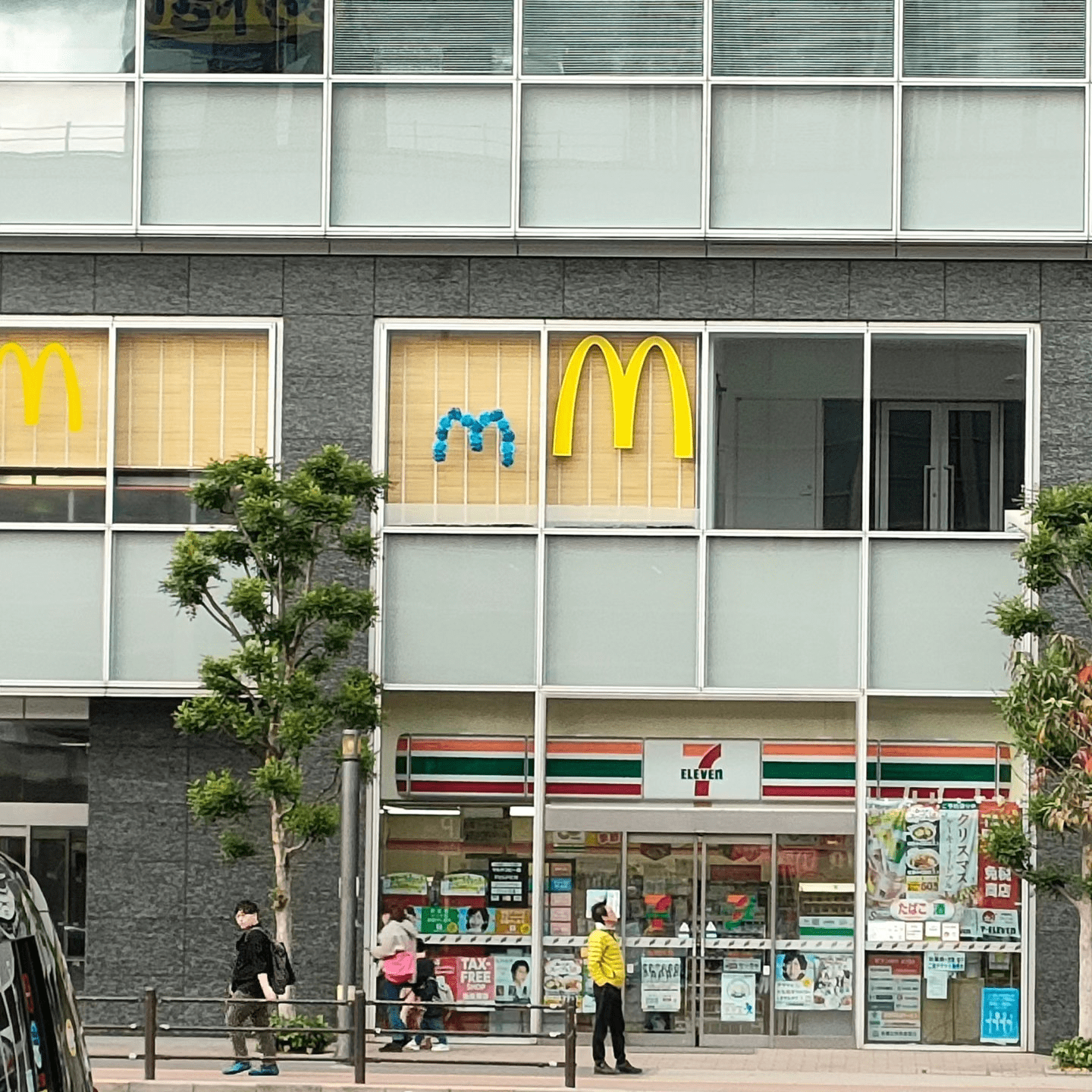 ……その後、有識者に教えてもらったのですが、この手作りの小さいmはマクドナルドのチャリティキャンペーン「青いマックの日」の飾りなのだそうです。