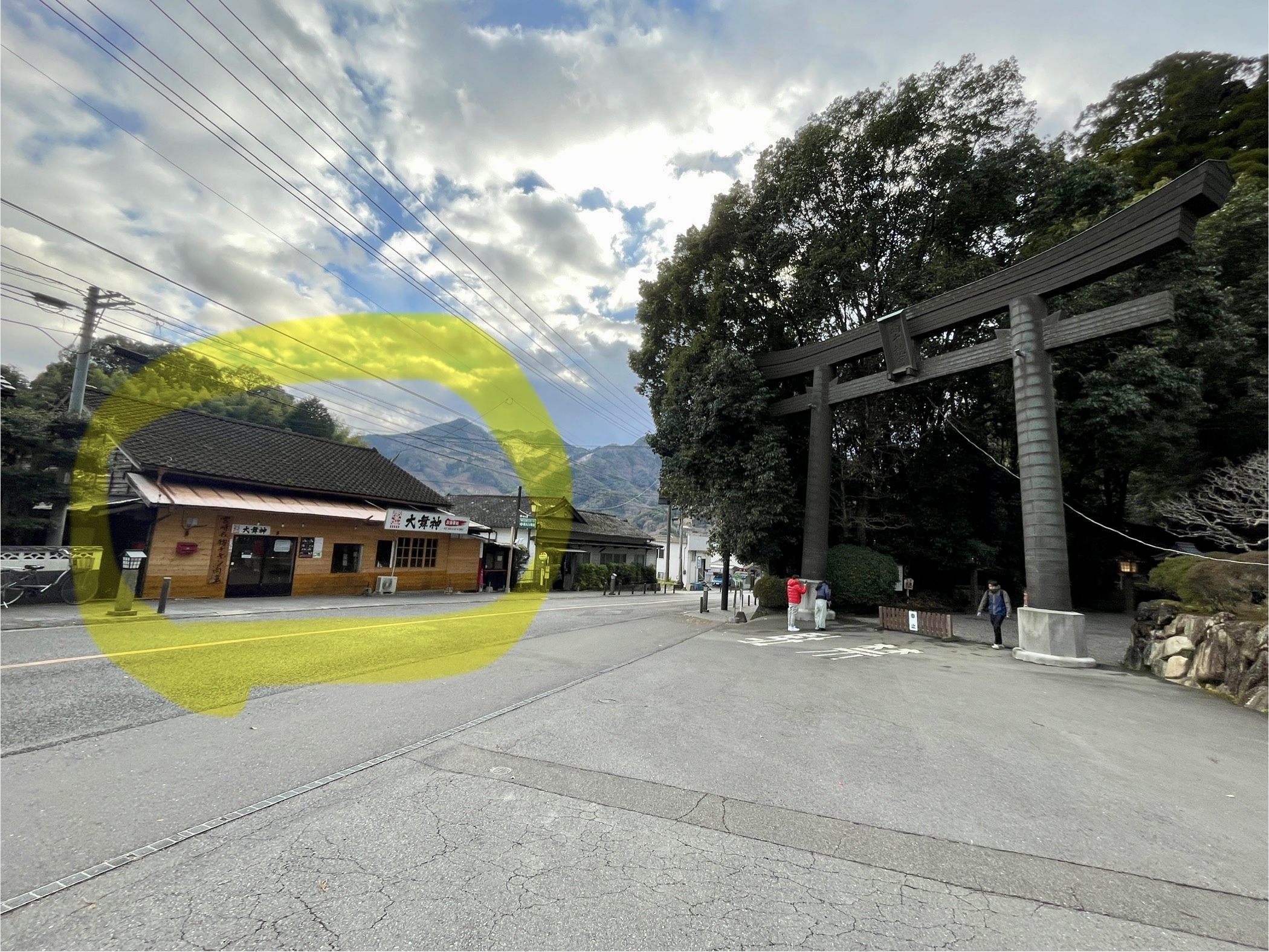 宮崎県の高千穂神社のすぐ向かいには唐揚げ屋があります。