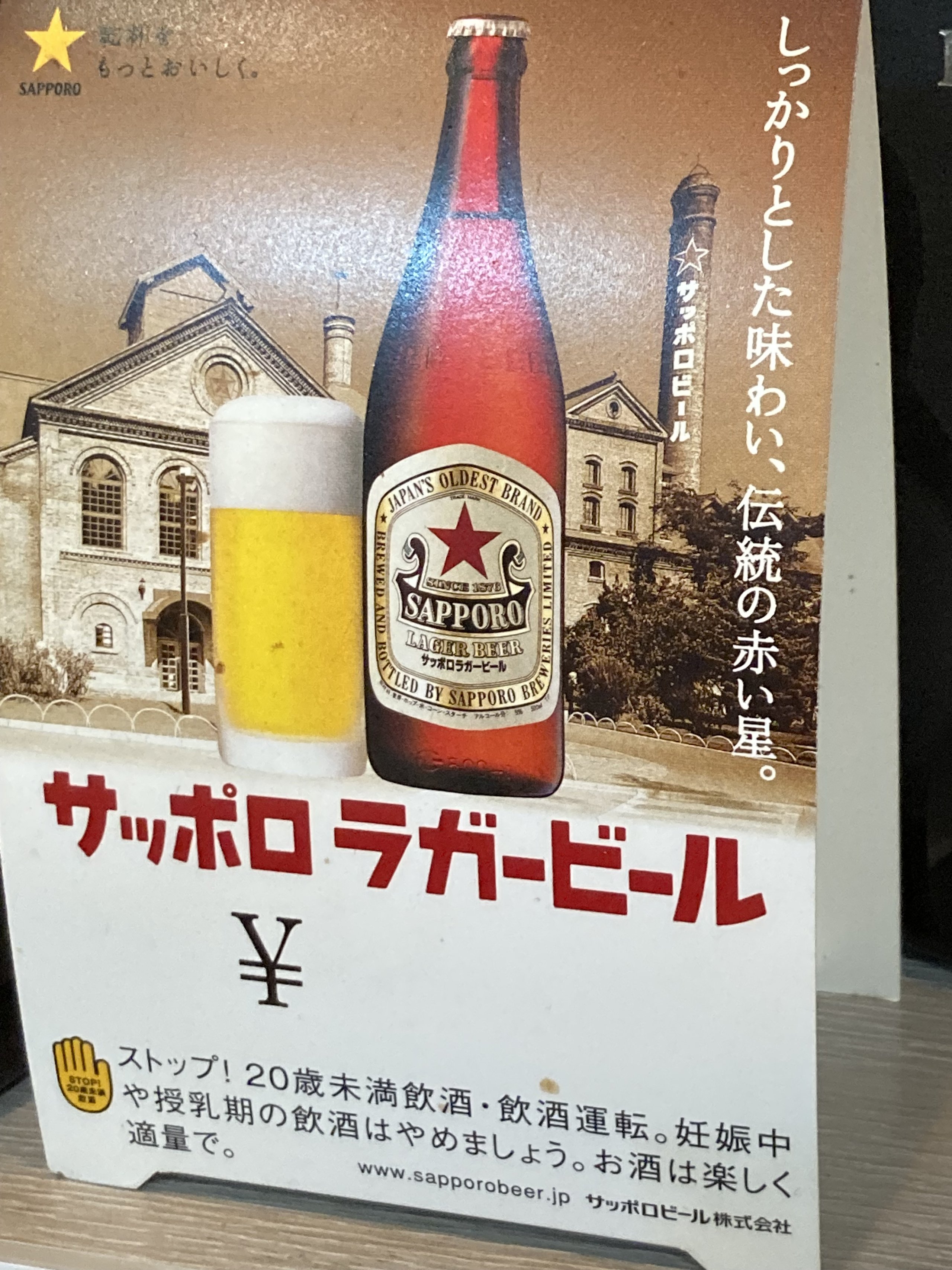 「輸入ビールか地ビールかな?」と思ったら、「サッポロ」ラガーでした。わかりにくい省略!